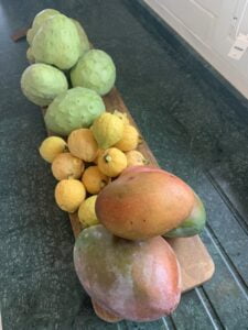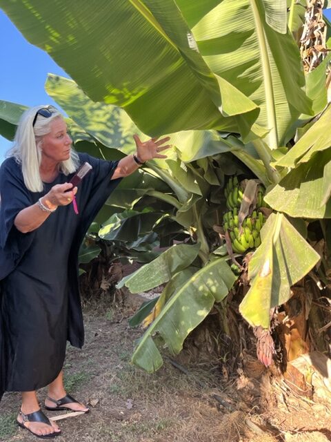 Stoltheten när hon berättar om sin trädgård och trädet Moringa som är världens nyttigaste träd, går att ta på. Av trädets blad gör hon nyttiga små shots till frukosten åt sina gäster och låter oss smaka på bladen som är tunna och vackra och smakar gott.