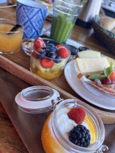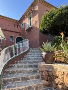 Elisabeth tar emot oss på den otroligt vackra innergården och den stress vi kände över jobb och annat på vägen hit är som bortblåst, hon sveper ner för den vackra trappan från huset och tar emot med oss med en varm öppen famn som om hon aldrig har gjort annat, och vi känner oss varmt välkomna! Elisabeth och hennes man Johan köpte huset i Maro precis innan pandemin, på 20 minuter så var köpet klart och drömmen om ett eget B&B i toppklass hade blivit sann.