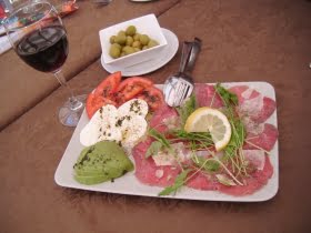 Ugnsbakad aubergine med tomatröra och ost smakade mycket gott. En bra tallrik att dela på är carpaccio tricolore som serveras med avokado, ost och färsk tomat som tillbehör. Glutenfri pasta finns i penne eller spagetti och vi valde den goda såsen Guiseppe som görs med tomat, grädde, rökt skinka och ost. För glutenfria alternativ finns ytterligare 5-6 såser att välja på inkl. pizza, kyckling och scaloppines. Och en 3 rätters meny för under 20 € serveras både till lunch och middag. Casa Italia får alltid många fina vitsord på Tripadvisor.