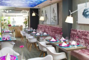 C´est la vies koncept spelar på våra fem sinnen: Syn – Njut av storstadskänslan inne i restaurangen med konst på cement väggar, skylite, modern design eller utomhus på terrassen med mer gräs och trä miljö.