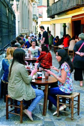 Vi sitter vid cafébordet eller bardisken och dricker vårt kaffe. En stund för återhämtning, begrundan, iakttagelse, en stund för samtal eller tidningsläsande. Och du får sitta hur länge du vill på din spanska trottoar- eller torgservering.