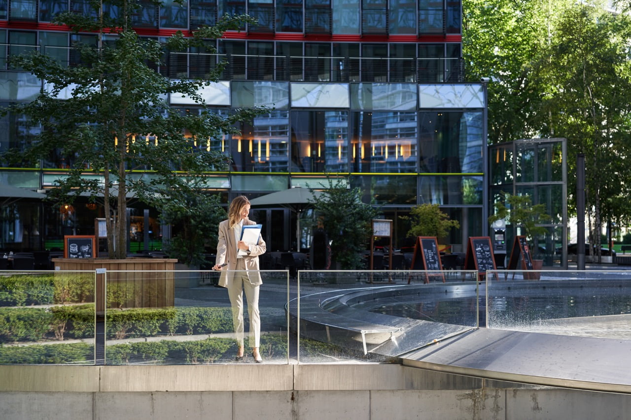Trivsam arbetsmiljö med utsikt mot myllret på gatan