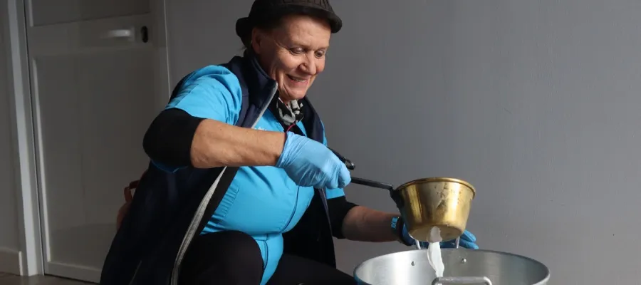 När vi kommer in i mejeriet, där Pepi är den som leder tillverkningen, märker vi genast den passion och noggrannhet som genomsyrar varje steg av processen.