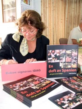 Det blev ingen översättning till svenska, det blev en ny bok, ”En doft av Spanien”, en genuin berättelse om spansk mat. Ingela betonar att hon inte är kock, utan journalist. Här finns alltså inga speciella ”ingelarecept”.