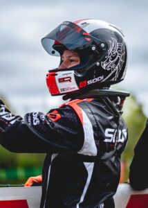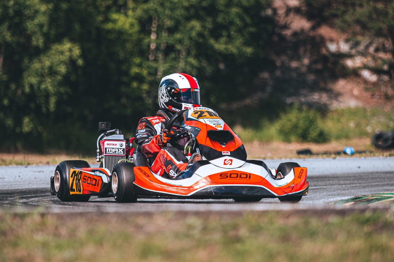 Jag började tävla i Sverige på allvar 2020 med pappa som mekaniker i klassen Mini, 9.5 hk och toppspeed 95 km/h, och körde 2 säsonger. Det blev bra resultat direkt, 3:a första året och 5:a i andra året totalt. I år har jag kört halva säsongen i J125, 4 tävlingar, i en större kart med 30 hk och en toppspeed på 130 km/h. Det har gått riktigt bra med pallplats i alla loppen.