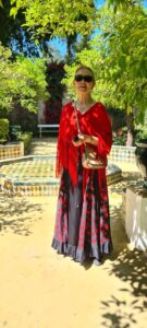 Britt-Marie Boudrie iförd en ”traje de flamenca” vid ferian i Sevilla ifjol