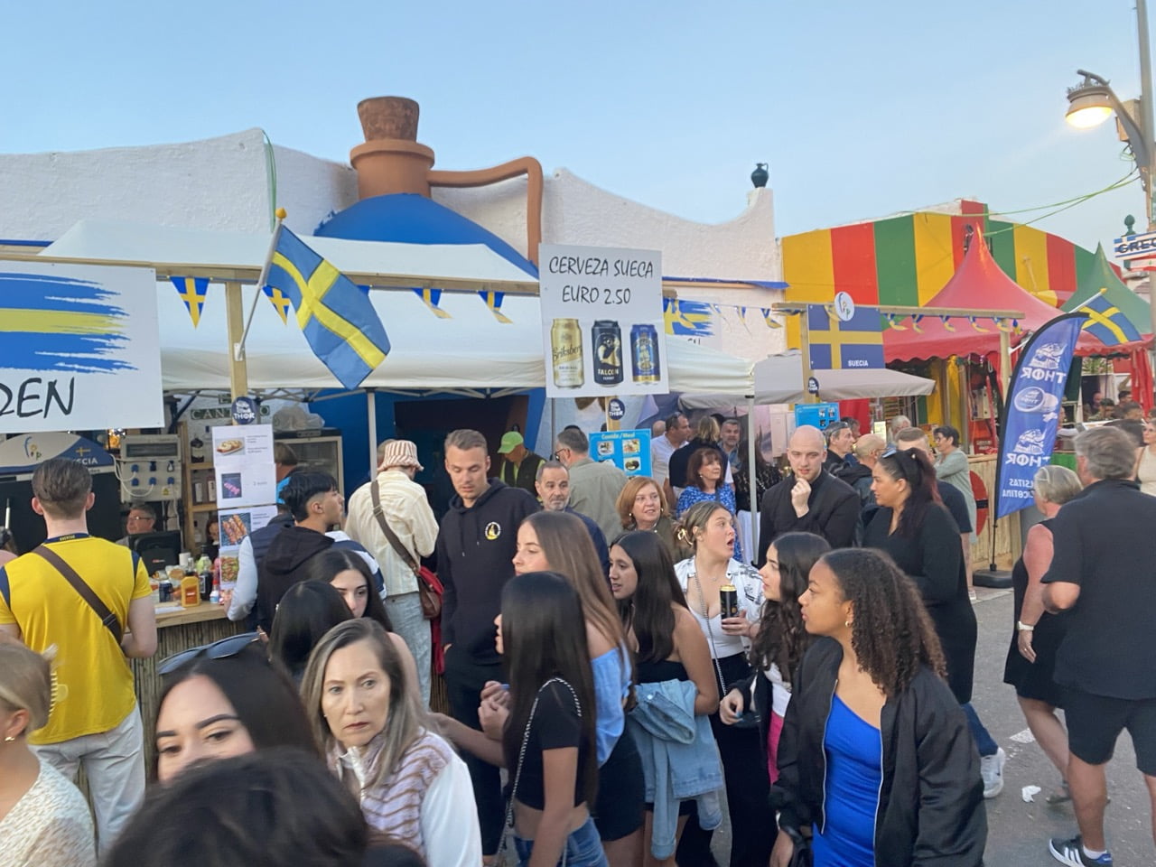 Svenska flaggor som vajar i vinden. Och en lokal som pryds av ännu mer flaggor. Det är blågult när Sverige är tillbaka på Feria Internacional de los Países med temat ”Vikingar”.