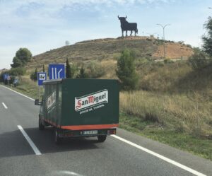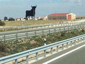 Jag färdades nyligen på landsväg mellan Madrid och Logroño i La Rioja. Och kunde snabbt konstatera att tjuren Osborne dök upp titt som tätt.