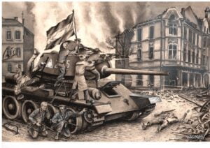 Harry Lange illustrerar sovjetiska tanks på gatorna i Budapest.