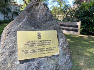 Prins Alfonso lät bygga Spaniens första bana för padel 1974. En minnessten finns på platsen där den första banan låg.