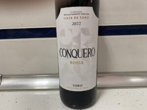 Överraskande bra vin för bara 2,90 euro. Conquero Roble 2022 på fransk och amerikansk ek 6 mån från Toro en av de populäraste vinerna hos Mercadona på druvan Tinta de Toro (Tempranillo). Mörka bär, toner av vanilj, kryddor och lite ek.