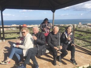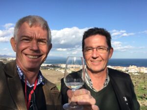Under besöket provar jag två blanco seco på Moscatel de Alejandría varav det ena är 100 procent ekologiskt. Ett dessertvin tillkommer också. Till vinerna serveras getost från närbelägna Sierra Crestellina i grannbyn Casares. Det kan inte bli mer närodlat och närproducerat.