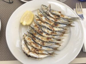 På sommaren smakar Espeto de Sardinas, Sardinspett, som godast. Färska sardiner, en nypa salt och grillade över olivträ.