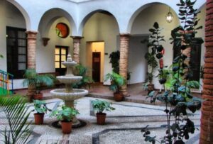 Casa Cervantes har en vacker fyrkantig patio med tredubbla halvcirkelformade bågar.