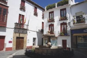 På promenad genom Gamla stan i Vélez-Málaga blir jag stående framför Casa Cervantes på calle San Francisco 22. Det vackra huset ligger på det lilla mysiga torget plaza San Francisco med fontänen med samma namn, Fuente de San Francisco.