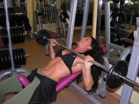 Utförande: Ligg på en bänk som lutar mellan 45 och 60 grader. Fatta skivstången med överhandsgrepp och med händerna något bredare isär än axelpartiet. Andas in och sänk skivstången tills den når halsgropen. Pressa upp tills raka armar och andas ut. 3×12.