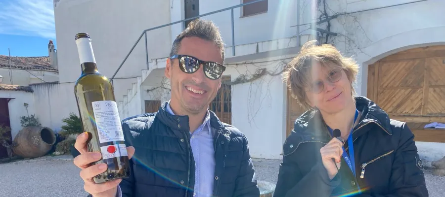 Roberto López del Nero som är den femte generationen i den familjeägda bodegan Nero i Chinchón. Här med guiden Josephine Berne