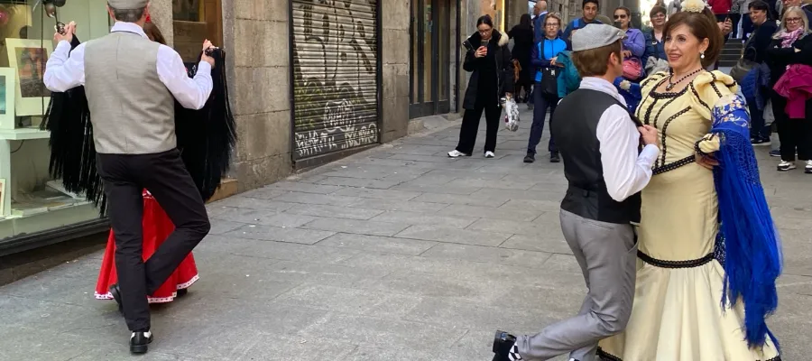 En skön spontan stämning nedanför Plaza Mayor på söndagen med den lokala dansen ”El chotis”.