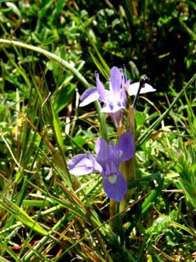Knöliris (Iris sisyrinchium). En av de tidigaste blommorna i Andalusien är den lilla vackra knölirisen med sina långa smala blad. Alla irisar har fått sitt namn av regnbågens gudinna Iris. Efternamnet sisyrinchium betyder att växten har söta knölar och de är just välsmakande och har hjälpt svältande i svåra tider. Text/Foto: Lennart Ekman