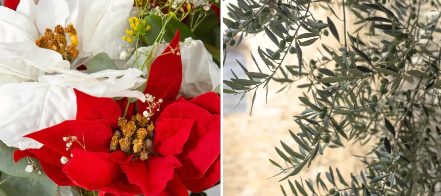 • Oliv- och eukalyptusblad: Använd oliv eller eukalyptusblad för en naturlig julkrans. Dessa blad har en härlig färg och doft, och kransarna varar längre.