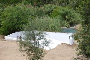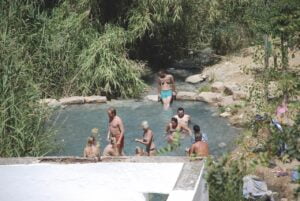 Många besökare smörjer in kroppen med den svavelhaltiga leran från bergsväggen vid floden. För att sedan sätta sig i solen och torka. Efter en stund går man ner i vattnet igen för att göra sig ren.
