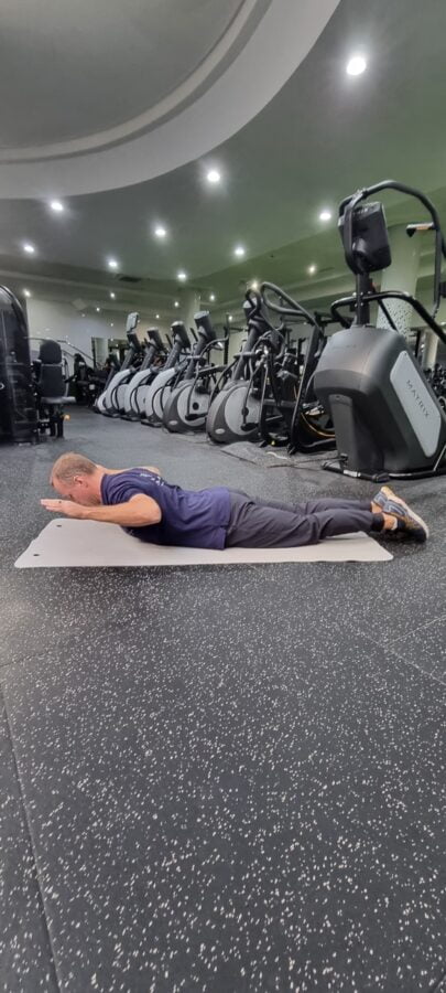 Rygglyft är en bra övning för att stärka ländryggen och även aktivera övre delen av ryggen. Vi lägger oss på marken med händerna bakom huvudet. Vi har raka ben, låser överkroppen samtidigt som vi spänner rumpan. Härifrån så lyfter vi bröstet från marken. När vi sedan går ner igen så undviker vi att hamna i ett avslappnat läge innan vi vänder upp igen.