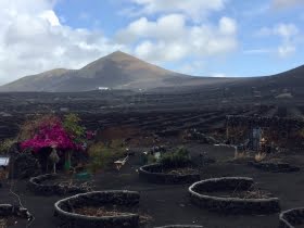 Det som gör Lanzarote så speciellt är vinodlingarna på ön. Vinstockarna växer i gropar, en vinstock i varje grop. Varje vinstock producerar cirka en flaska vin. Vilket enormt arbete som krävs för att få fram 500.000 flaskor.