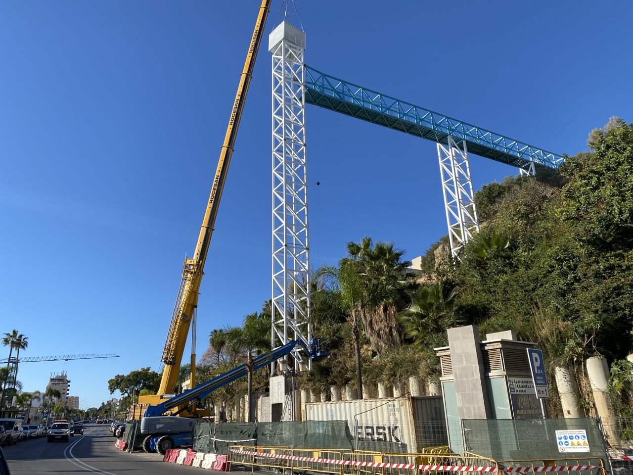 Just nu pågår arbetet med att färdigställa en 28,8 meter hög panoramahiss som ska förbättra kommunikationen för gångtrafikanter mellan Parque de La Batería och stranden nedanför Montemar-kvarteren i La Carihuela i sydvästra delen av Torremolinos.