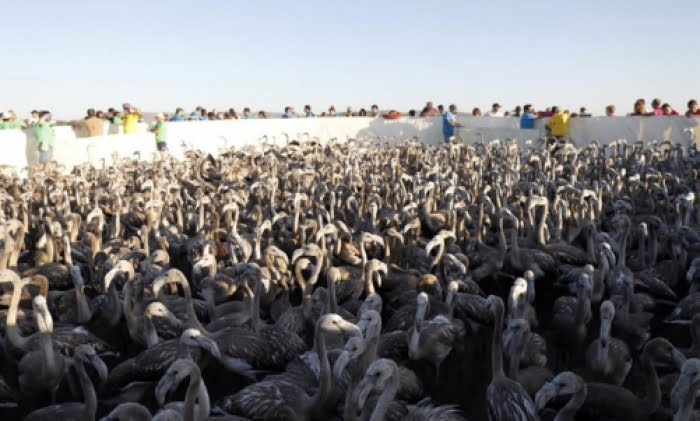 Under förra veckan deltog mer än 500 volontärer vid ringmärkningen av de populära fåglarna. Ringmärkningen är en stor händelse som i år firar 35 år och som ingår i ett program för att bevara och reproducera flamingofåglar.