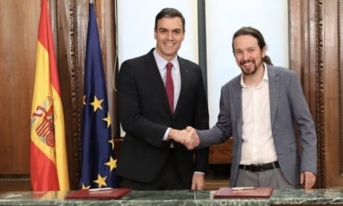 Vänsterradikala Unidas Podemos har vid förhandlingarna med PSOE satt flera krav. Bland annat att partiledaren Pablo Iglesias ska ha posten som vice regeringschef. Partiet får även ansvar för ytterligare fyra departement där ett av dem hamnar under Förenade vänstern IU:s partiledare Alberto Garzón från Málaga.
