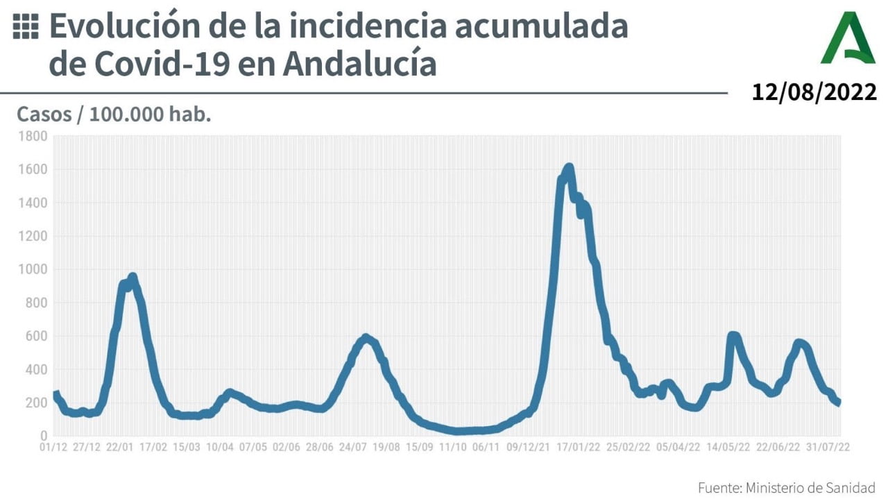 I Andalusien har antalet smittfall på 100.000 invånare över 60 år minskat med 375,1. Den 15 juli rapporterades 522,6 fall per 100.000 invånare. Under gårdagen rapporterades 147,5 fall.