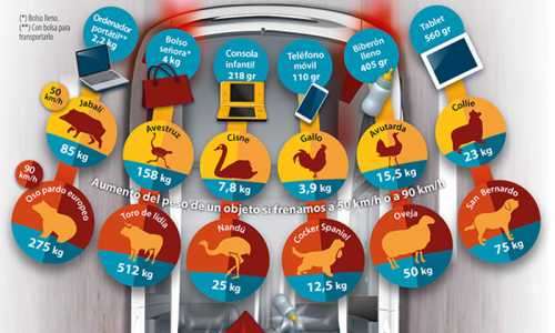 Det spanska trafikverket DGT förklarar det med den så kallade ”elefanteffekten” vilket innebär att vid en fart på 50 km/h så skall vikten på det lösa föremålet multipliceras med 40. Det betyder att till exempel en bärkasse på 10 kilo kan få en rörelseenergi på 400 kilo. Går det fortare så ökar rörelseenergin i kvadrat i förhållande till hastighetsförändringen, en hastighetsökning från 50 km/h till 100 km/h innebär alltså en fyrdubbling av rörelseenergin och då har 10-kiloskassen helt plötsligt kommit upp i 1.600 kilo.