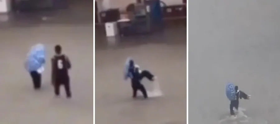 👏 Un hombre acude al rescate de una mujer asustada que se queda atrapada y la coge en brazos en medio de la tromba de agua en Málaga