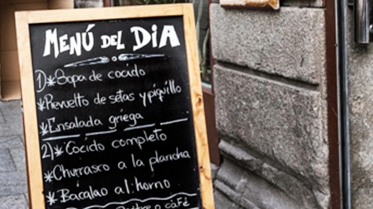 Då skulle även landet erbjuda en meny för en billig peng (läs pesetas). I turistmenyn eller dagens meny (meny del día) skulle starta med en ”primer plato” (kräm eller soppa), fortsätta med en ”segundo plato” (färsk fisk, kött eller ägg med tillbehör som potatis eller sallad). Därefter ”un postre” (frukt, efterrätt eller ost). Vin, öl eller annan dryck samt bröd ingick också i ”menú turístico”.