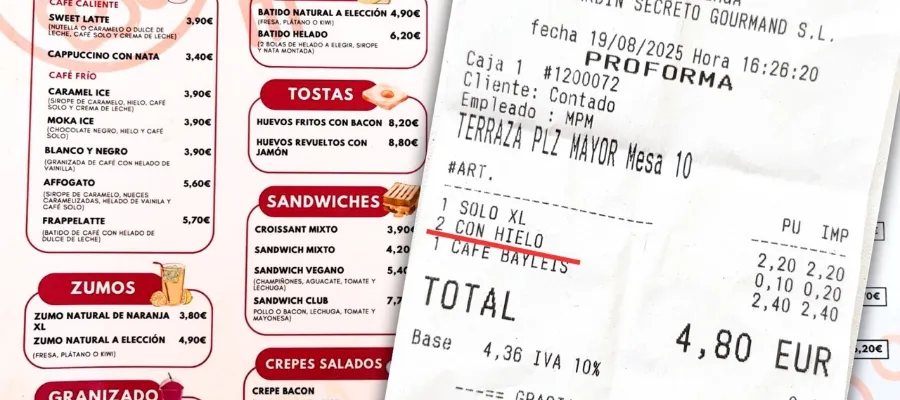 Efter att ha beställt in iskuber för att kyla ner kaffet visade notan att besökarna hade debiterats 10 céntimos för iskuber till varje kopp kaffe.