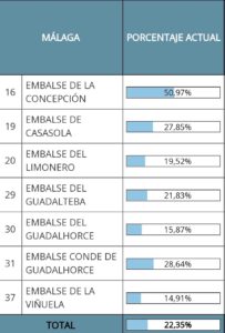 Beläggningen i Málagaprovinsens vattenreservoarer.