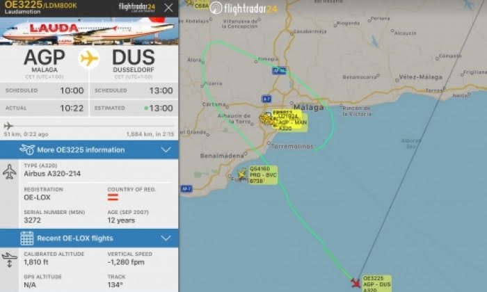 Anledningen till att planet, som tillhör flygbolaget Lauda, fick vända tillbaka kort efter start berodde på ett motorfel. Enligt officiella källor rapporteras inga incidenter. Enligt den spanska luftfartsmyndigheten Enaire skedde nödlandningen utan problem.