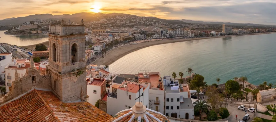 Vy över Peníscola i regionen Valencia, där bostadspriserna ökade mest i mars – upp 2,4 %. Lika stor var uppgången i Murcia. (Foto: Bjurfors)