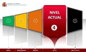 Terrorhotnivån (Nivel de Alerta Antiterrorista) ligger fortsatt på en fyra på den femgradiga skalan sedan juni 2015.