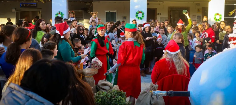 Populär aktiitet när den svenska jultomten kommer till byn.