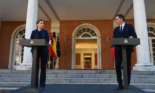 – Det blir ett beslut som vi kommer att uppskatta. Och vi hoppas att det kommer snart, sa Pedro Sánchez vid en pressträff tillsammans med Danmarks statsminister Mette Frederiksen som besöker Spanien (bilden).