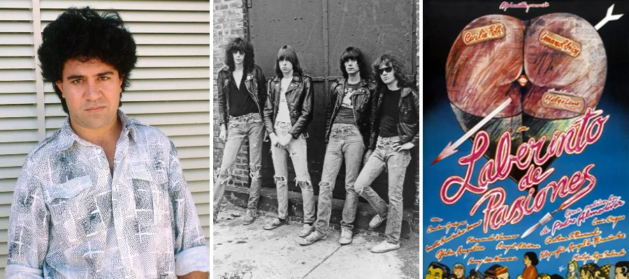 Filmskaparen Pedro Almodóvar var ett av La Movidas tyngsta namn (Foto: Gorupdebesanez). La Movida dansade till de nya tonerna av punkrock. Flera internationella band som Ramones besökte Madrid under denna tid för att spela för sin nya publik. Almodóvars film Laberinto de pasiones från 1980.