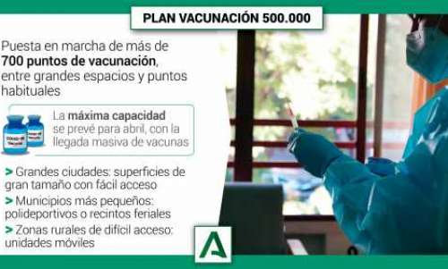 Andalusien har en färdplan hur vaccineringen ska gå till. Kapaciteten finns, det som saknas är vaccinet. Totalt 14.000 har utbildats i det som benämns som Plan 500.000 (bilden). Vid 747 platser ska massvaccination utföras.