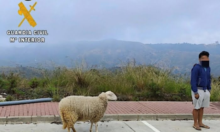Bildtext: Fåret och mannen, foto: Guardia Civil.