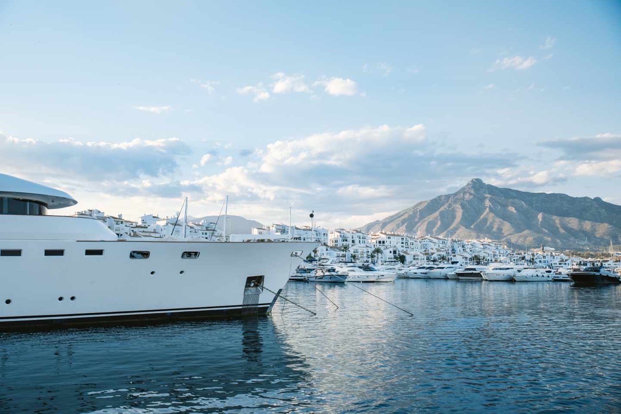 På bilder ses Marbellasvensken Olof K Gustafsson, vd för Escobar Inc, spatsera i fritidshamnen Puerto Banús.