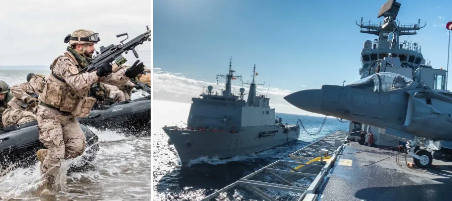 🚢 Participan el portaaeronaves #JuanCarlosI, el buque #Galicia, #InfanteríaDeMarina y medios aéreos. pic.twitter.com/jVrEKOV4of