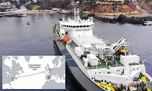 Uppgiften att lägga kabeln har gått till det inom området specialiserade företaget SubCom och kabeln förväntas vara operativ för att kunna hantera våra data under 2022. Google säger att kabeln som läggs ned har 16 fiberpar (32 fibrer), vilket är dubbelt så mycket som världens hittills kraftfullaste undervattenskabel (Vilket är ”Marea” en kabel som förbinder USA och Spanien och ägs av Facebook och Microsoft). Bildtext: Grace Hopper Cable System. Foto: Google Cloud.