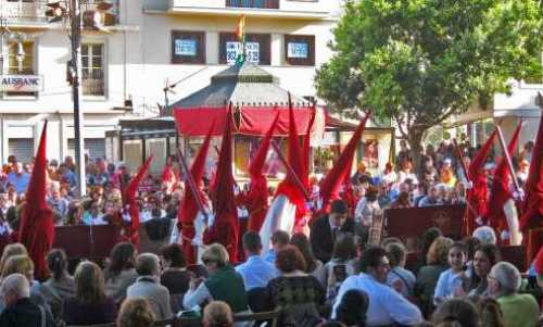 Påskveckan kallas ju i Sverige för ”stilla veckan”, här i Spanien är den långt ifrån stilla, det är en folkfest. Även om stil och stämning varierar från stad till stad så är de grundläggande delarna samma. Det bör i sammanhanget nämnas att om det regnar så ställs processionerna in, tronerna är gamla och känsliga för vatten så den risken tas inte. I år ser det ut som om det finns risk för regn i slutet av påskveckan medan inledningen blir solig och varm.