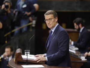 Oppositionsledaren Alberto Núñez Feijóo anklagar regeringen för ”politisk korruption” med att ge amnesti för separatister i utbyte mot att kunna styra vidare.