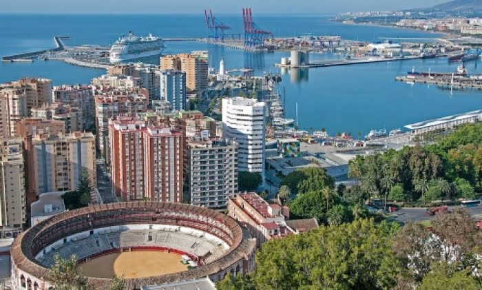 Bildtext: Málagas hamn fotograferad från Gibralfaro, foto: bvi4092.